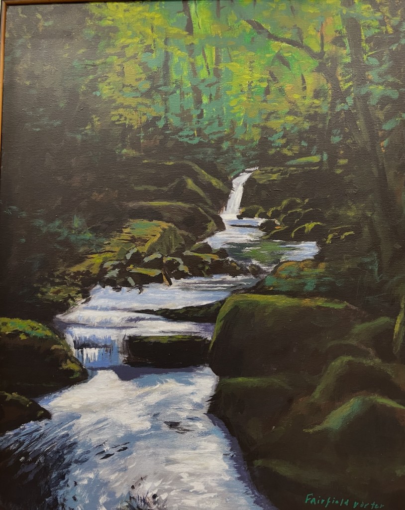 Measuring 30” x 24”, this work captures Porter’s masterful ability to balance realism with painterly abstraction. The cascading waters of Maine’s Moxie Falls are rendered with both immediacy and sensitivity, showcasing the artist’s unique vision that bridges representational landscape and modern expression.