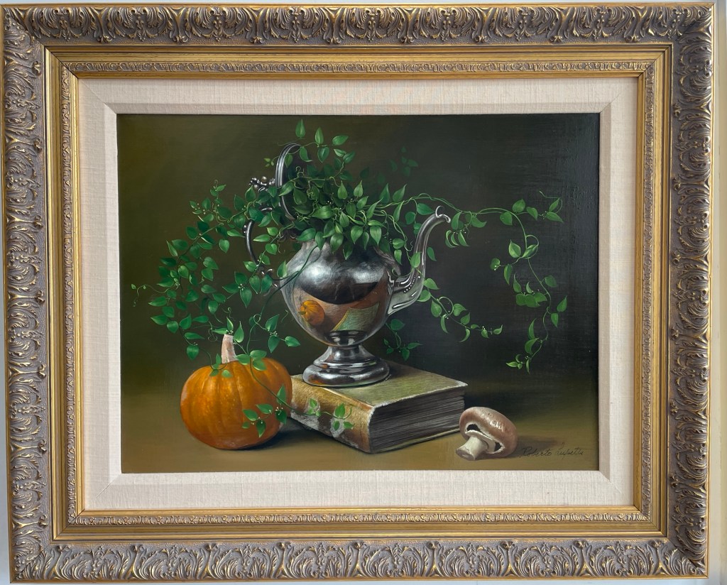 Timeless elegance meets natural beauty 🍂✨ This original oil on canvas by renowned artist Roberto Lupetti, Still Life with Pumpkin and Mushroom, captures the richness of autumn’s harvest with masterful realism. From the gleaming silver vessel to the warm textures of the pumpkin and mushroom, every detail speaks to Lupetti’s artistry and classic style. A striking work for collectors of fine still life.