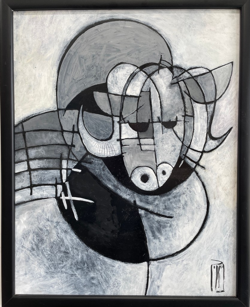 A bull stripped of color, fragmented into form—Rossia’s Buey Muerta channels the tension between vitality and decay. Stark, sculptural, and unapologetically modern, this piece confronts the viewer with raw geometry and mythic weight. A monochrome elegy with horns.