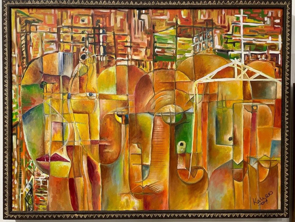 Kalweo’s brushwork is bold, layered, and unapologetically complex—inviting viewers to decode the city’s emotional architecture. This piece is ideal for collectors who appreciate cubist influence, narrative depth, and large-format impact.