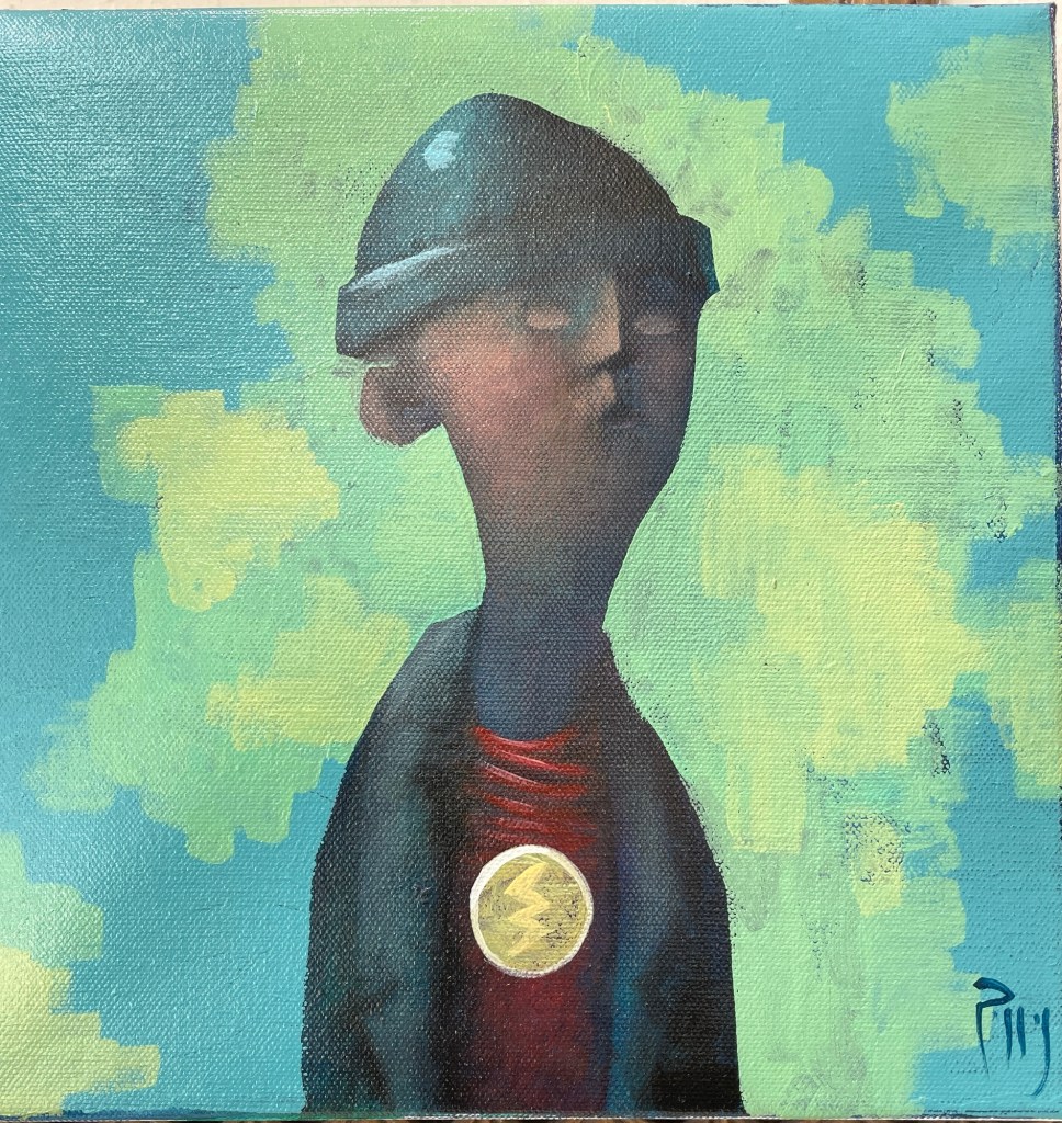 This 12” x 12” original oil on canvas by Fernando Rossia captures a modern, stylized figure whose quiet strength shines through. A bold composition with subtle textures, it’s a unique piece that embodies resilience and individuality.
