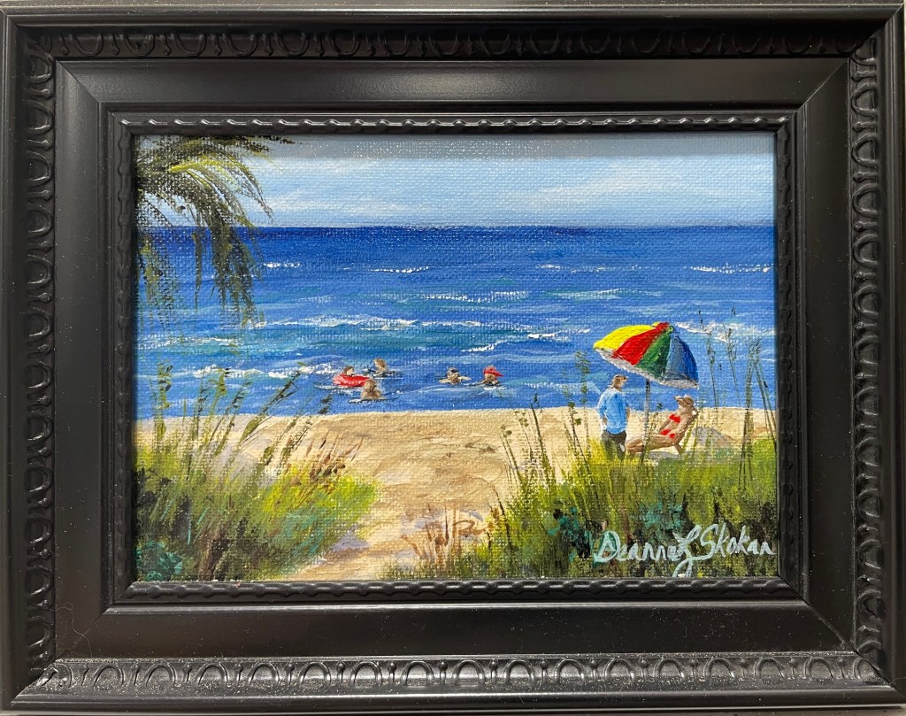 Art, Landscape art Sunday by Deanna Skokan Posted by kagwdm on September 20, 2025 ✨ Sunday ✨ This charming 5” x 7” acrylic by Deanna Skokan proves that beauty doesn’t need a lot of space. A perfect little treasure for collectors who say they have “no room” for more art. 🌊🌴☀️ Share this: Click to share on X (Opens in new window) X Click to share on Facebook (Opens in new window) Facebook More Click to email a link to a friend (Opens in new window) Email Click to share on Threads (Opens in new window) Threads Like Loading...