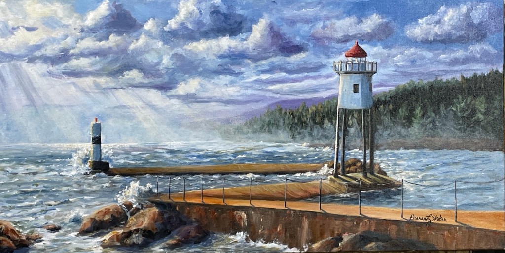 The sea doesn’t ask permission—it crashes, calls, and carves its own rhythm. In Morning Burn, Skokan captures the raw pulse of the coast: two lighthouses standing sentinel as waves hammer the pier and sunlight fractures the storm. It’s a moment of tension and clarity, where guidance meets grit.