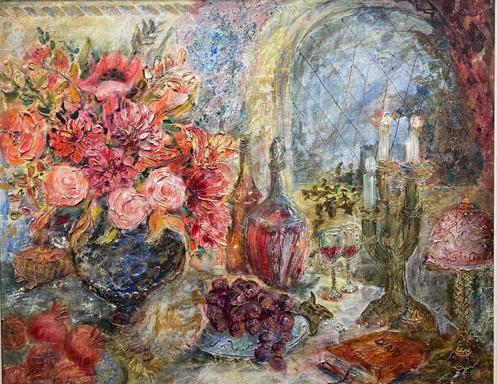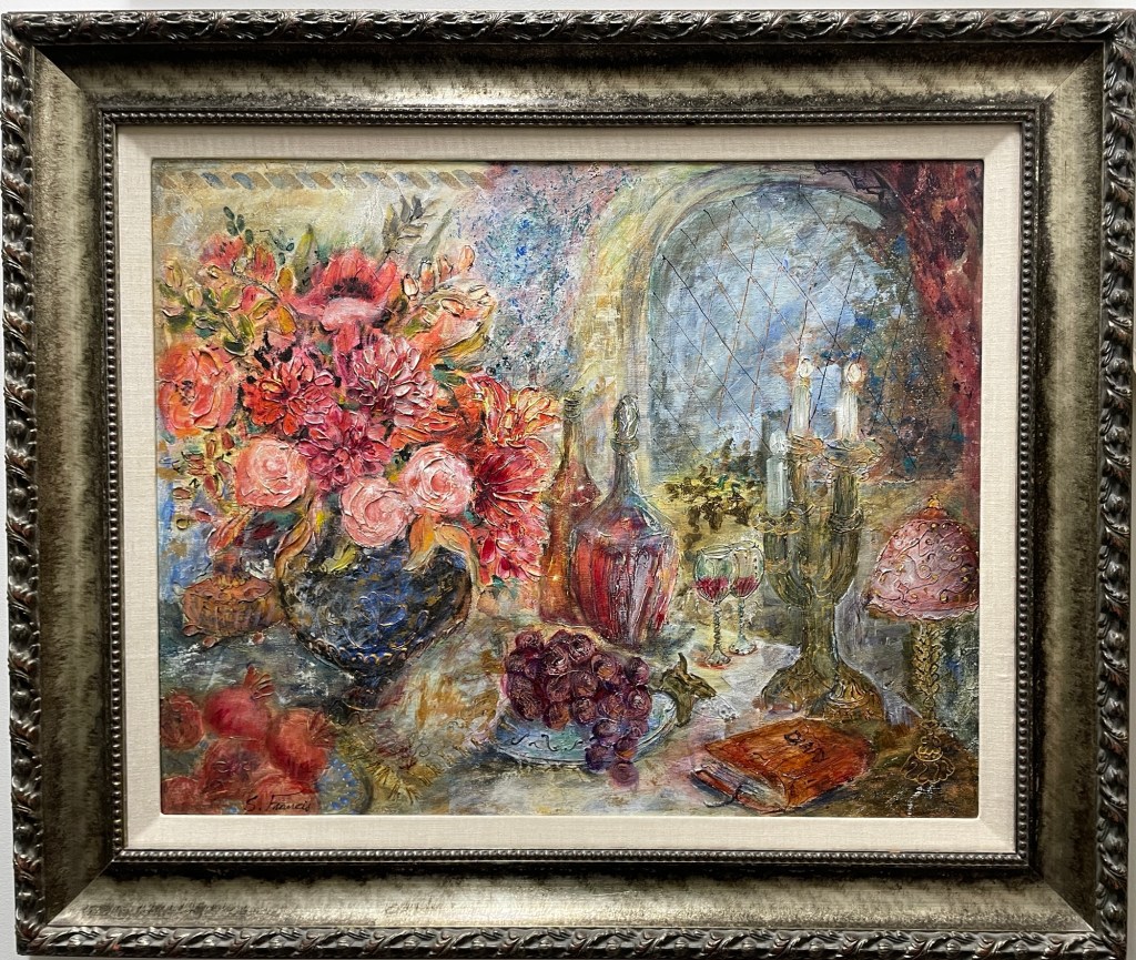 Francis, born in Dublin in 1942, is an Irish-Israeli painter known for her romantic, nostalgic scenes. A graduate of the Avni Institute of Fine Arts in Tel Aviv, her work often reflects Renaissance and Moorish influences, with rich textures and muted tones that whisper of gentler times. Her paintings have been exhibited across Europe, Israel, Canada, and the U.S., and are prized for their quiet sensuality and intricate detail from the layered textures of fabric and fruit to the subtle interplay of light and shadow. Her still lifes often feel like quiet stories unfolding in slow motion.