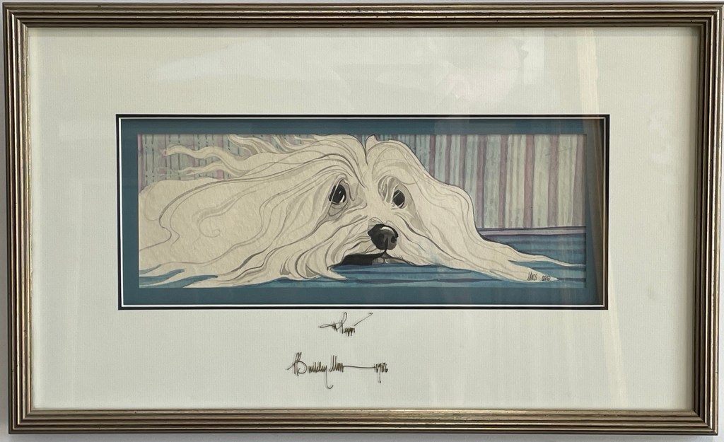 A rare and intimate commission by P. Buckley Moss, painted for one of the original owners of Kavanaugh Art Gallery. “Peppi” captures the gentle spirit of her beloved Maltese, rendered in Moss’s unmistakable style—soft, flowing lines and soulful eyes.