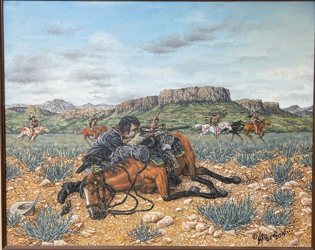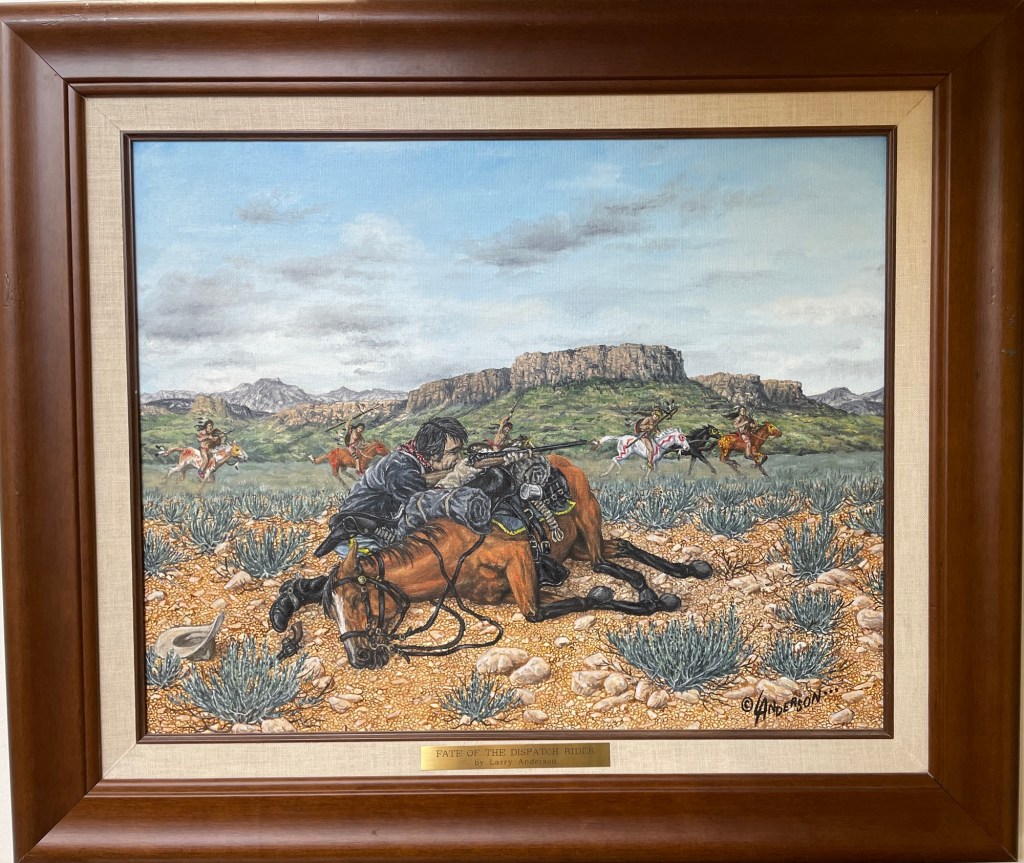 The dust has settled, but the story lingers. In Fate of the Dispatch Rider, Larry Anderson delivers a poignant sequel to his earlier work—capturing the aftermath of pursuit with haunting clarity. A fallen horse, a weary rider, and the distant thunder of approaching figures evoke themes of sacrifice, endurance, and the quiet heroism of the American frontier.