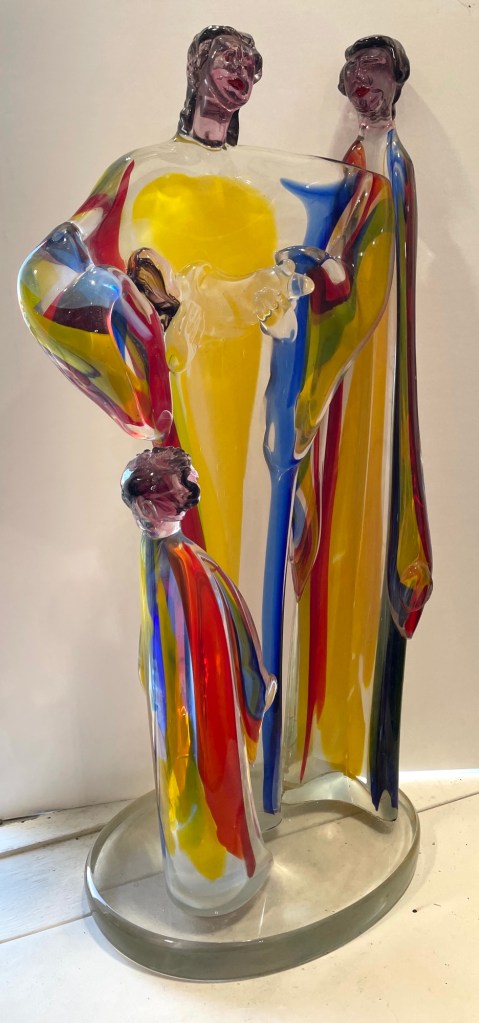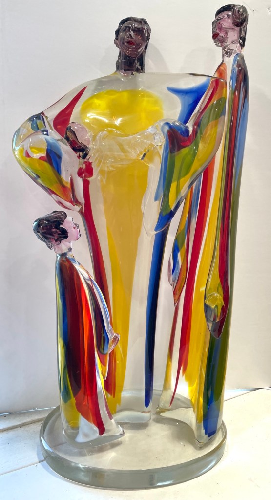 A radiant tribute to modernist genius—Walter Furlan’s Homage Picasso channels the spirit of abstraction through the fluid brilliance of Murano glass. Four stylized figures, fused in motion and color, evoke unity, creativity, and the bold experimentation that defined Picasso’s legacy.