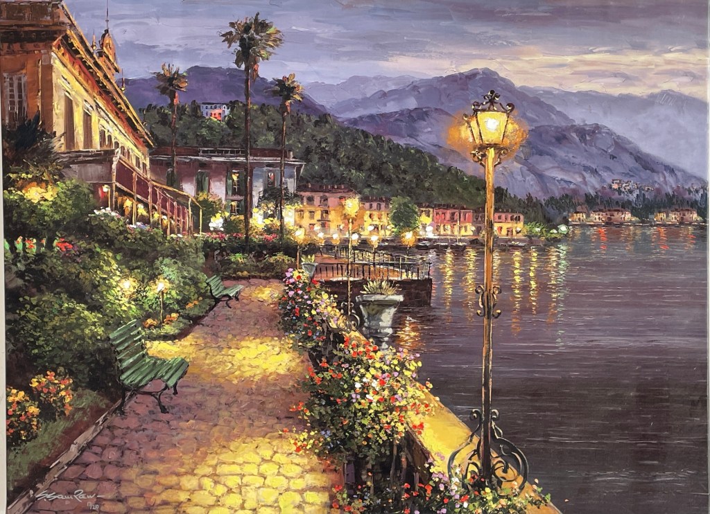 Twilight settles over the lake, and the promenade begins to shimmer. Park’s Lights of Bellagio is a masterclass in atmosphere—warm lamplight, dusky skies, and reflections that feel like memory.