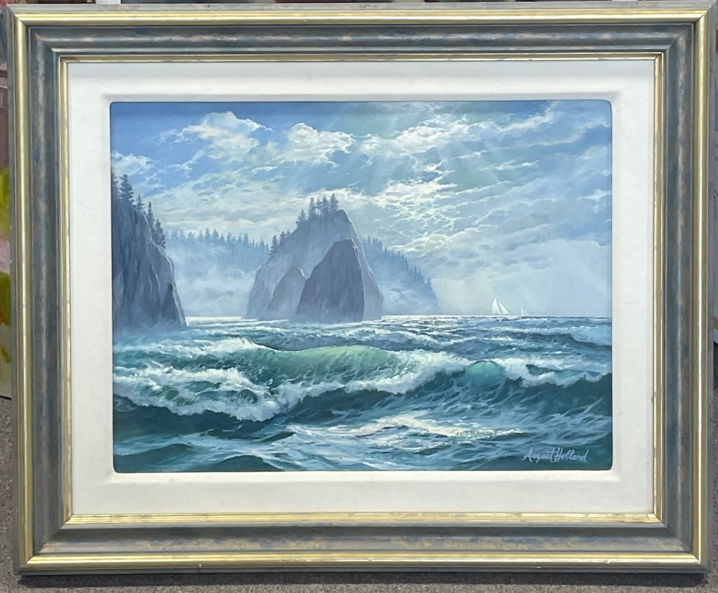 This piece invites reflection: on solitude, scale, and the sublime power of nature. Holland’s brushwork balances drama with serenity, making it a standout for collectors drawn to mood-rich landscapes.