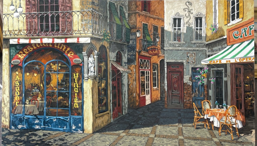Step into the warmth of a Mediterranean afternoon—where cobblestone streets lead to tucked-away cafés, and every doorway invites a story. Shvaiko’s masterful brushwork captures the romance of European architecture with luminous color and timeless charm. This large-format edition brings the scene to life with immersive detail and vibrant texture.