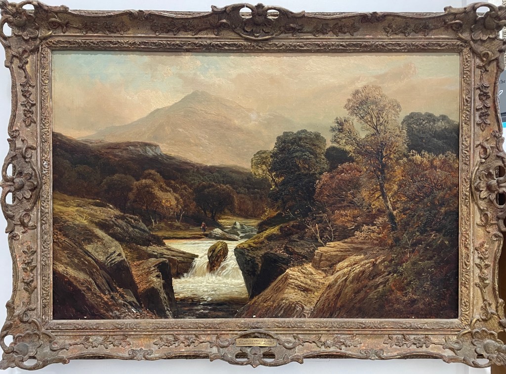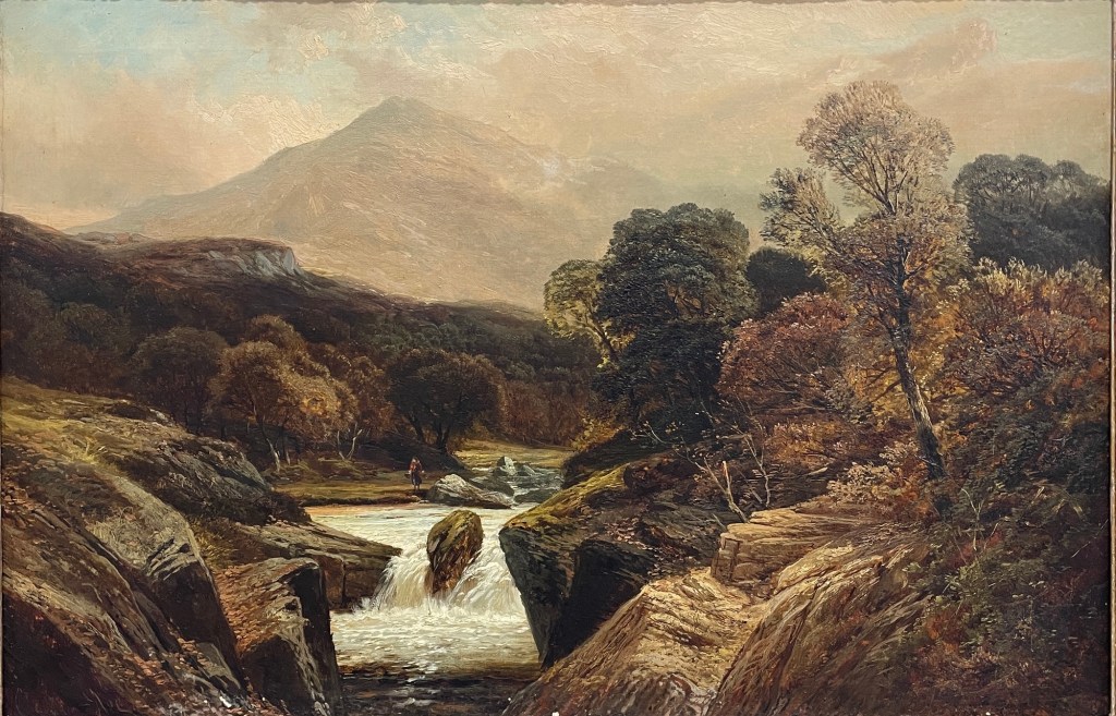 A dramatic cascade in the Welsh countryside, rendered with Victorian intensity. Clarence Roe’s landscapes are known for their romantic grandeur—rivers, lochs, and mountains painted with sweeping emotion and technical finesse. This piece captures the Lledr River in North Wales, a tributary of the River Conwy that winds through the slate-rich valleys of Snowdonia.