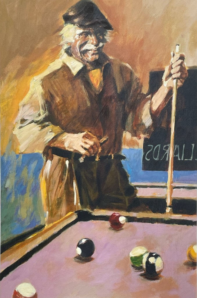 Aldo Luongo captures the quiet intensity of the game — a moment suspended between focus and finesse. The warm palette, vintage ambiance, and character-driven storytelling evoke nostalgia and charm, inviting viewers into a timeless billiards hall where every shot holds a story.