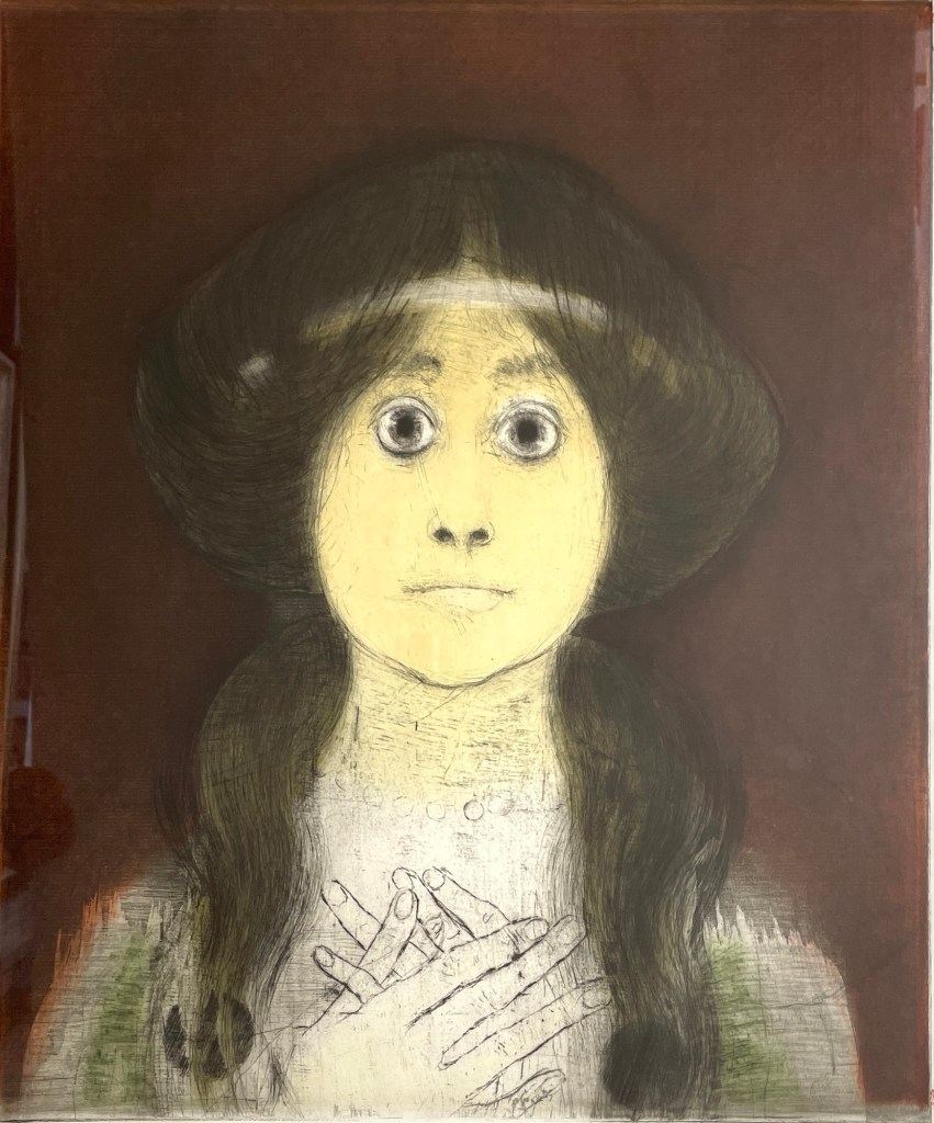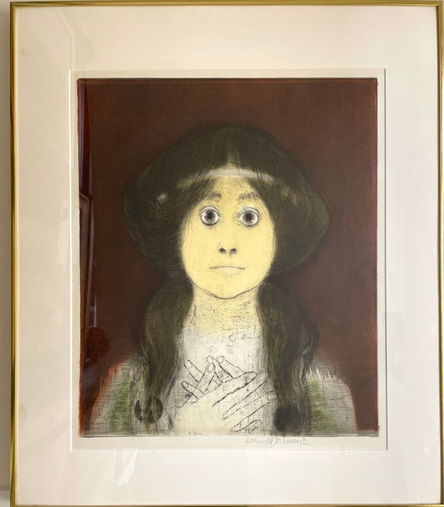 A master of emotional depth and technical precision, Lasansky renders this figure with surreal clarity and quiet tension. Wide eyes meet the viewer with disarming vulnerability, while hands interlace in a gesture both delicate and enigmatic. Dancer invites reflection on identity, gesture, and the silent language of expression.
