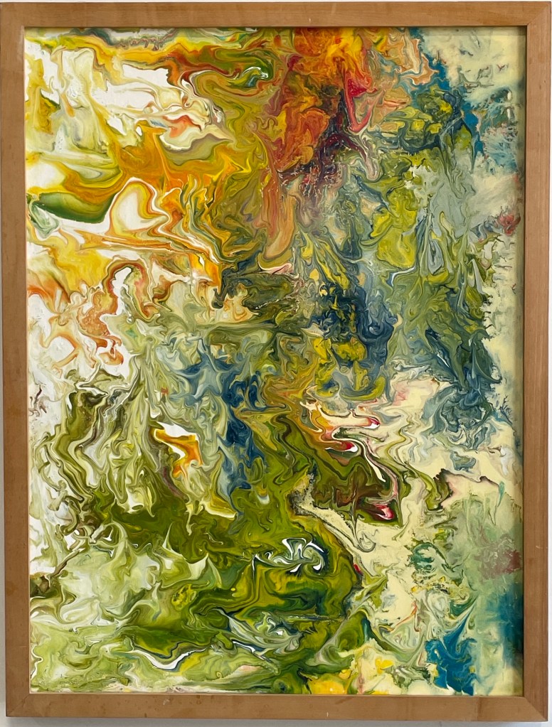 A cascade of color and motion—this original abstract channels the energy of fall foliage through layered texture and fluid form. Durnavich’s expressive technique evokes the rustle of leaves, the shimmer of light, and the quiet chaos of nature’s transition. A bold, organic statement for collectors drawn to movement and mood.