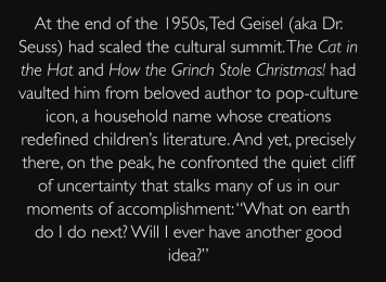 This tribute was modeled after Dr. Seuss’s original painting, Self-Portrait of the Artist Worrying About His Next Book.