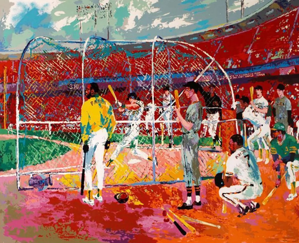A vivid celebration of America’s pastime, Bay Area Baseball captures the electric energy of batting practice in San Francisco. Neiman’s signature style—bold color, dynamic brushwork, and rhythmic composition—transforms a familiar sports ritual into a visual symphony of motion and anticipation. The scene pulses with life: players in mid-swing, coaches observing, and the stadium glowing in saturated reds and greens. It’s not just a game—it’s a moment suspended in color.