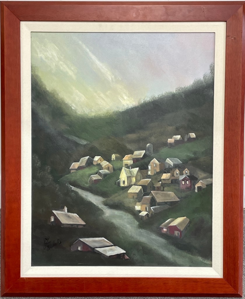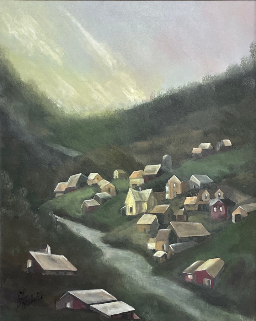 A quiet valley stirs beneath a rising sky—Chehak’s brush captures the hush of early light, where steeples and rooftops glow with promise. This piece invites stillness, reflection, and the warmth of a new beginning.