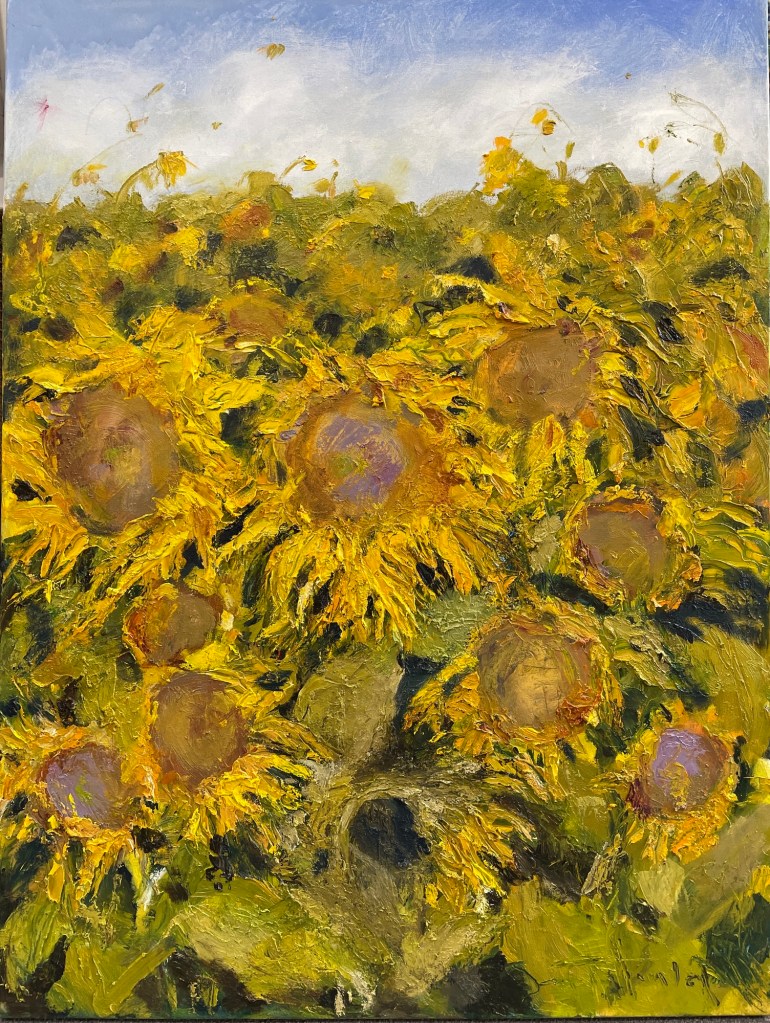 A radiant celebration of late-summer light, where thick brushwork and golden blooms evoke movement, memory, and abundance. Turley’s Arkansas roots shine through in every petal—earthy, expressive, and deeply felt.