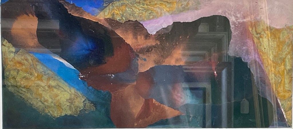 Where color collides with quiet—Beneath the Rush explores the tension between movement and stillness. Kit Roberts layers deep blue, ochre, and plum in this 8” x 16” mixed media on paper, creating a textured abstract that feels both grounded and electric.