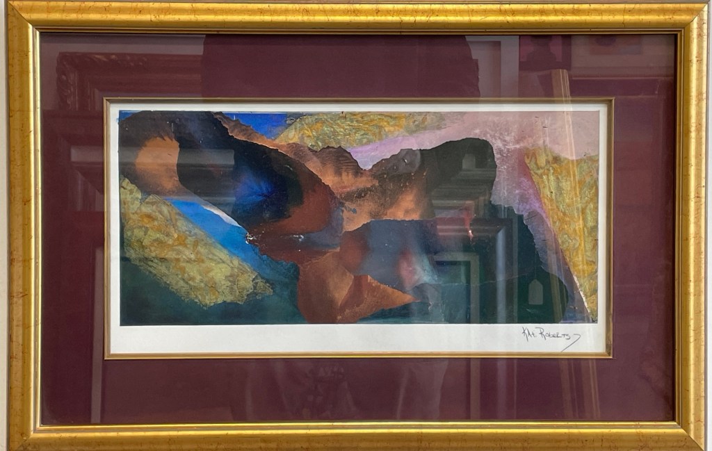 Framed in gold with maroon matting, it pairs beautifully with Echoes Between Color—or stands alone as a bold meditation on depth.
