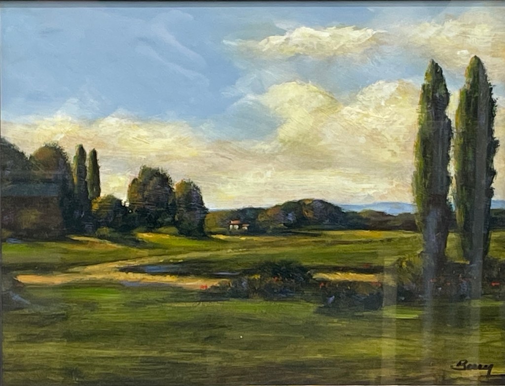 Art, Impressionist Art Stillness Before the Trees by Charles Berry Posted by kagwdm on January 5, 2026January 3, 2026 10” x 13” acrylic on paper by Charles Berry Framed | $575 A quiet rhythm of green and sky—Berry’s brushwork invites you to pause, breathe, and wander. The slender trees stand like sentinels in a field of memory, where light softens and time slows. Share this: Click to share on X (Opens in new window) X Click to share on Facebook (Opens in new window) Facebook More Click to email a link to a friend (Opens in new window) Email Click to share on Threads (Opens in new window) Threads Like Loading...