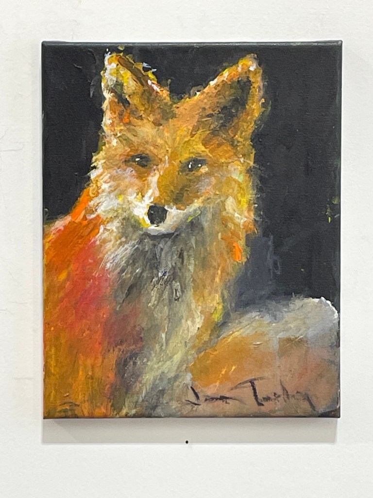 A striking impression of nature’s quiet intensity. With bold brushwork and a luminous palette, Jean Turley evokes the fox’s alert gaze and untamed grace. This intimate canvas pulses with texture and warmth.